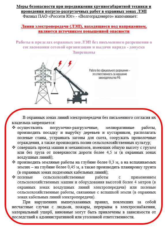 Меры безопасности при передвижении крупногабаритной техники и проведении погрузо-разгрузочных работ в охранных зонах ЛЭП